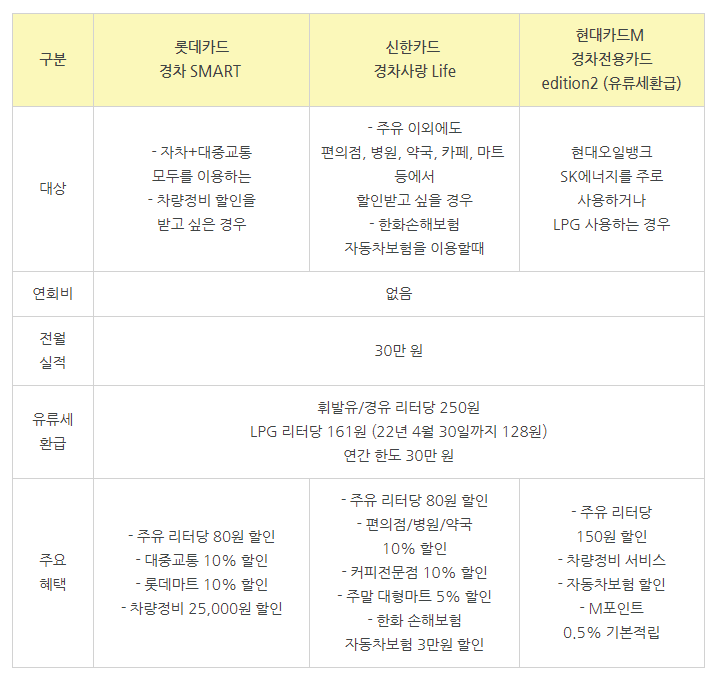 경차 유류세 환급 카드 내용정리: